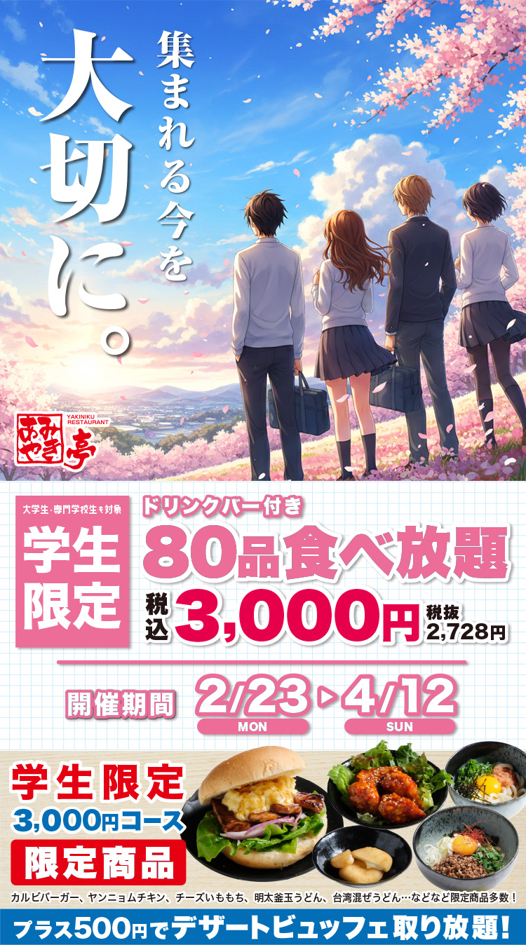 学生限定コースを楽しんであみやき亭パスポート